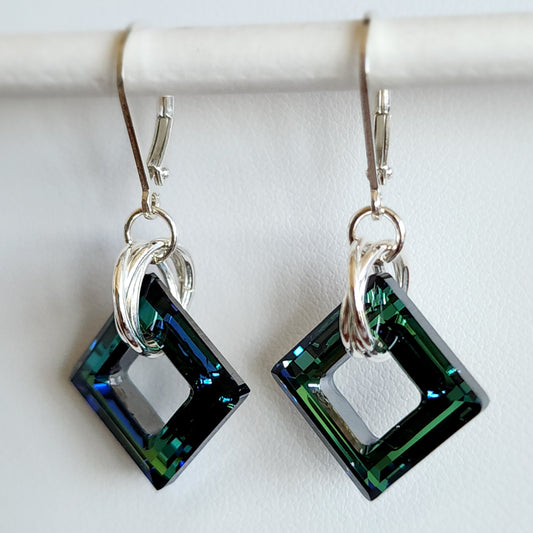 Swarovski Cosmic Square Crystal Earrings | Bermuda Blue