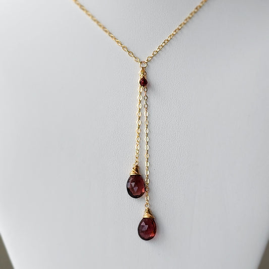 14kt Gold Fill Ruby Tourmaline Lariat Necklace