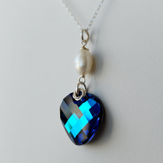 Swarovski Twist Crystal with Pearl Necklace | Bermuda Blue